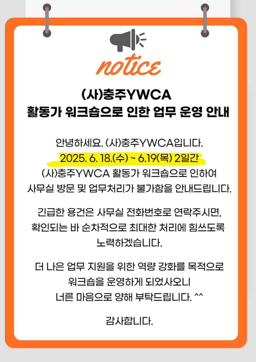 2025년 활동가 워크숍으로 인한 업무 운영 안내